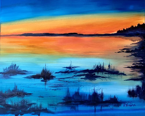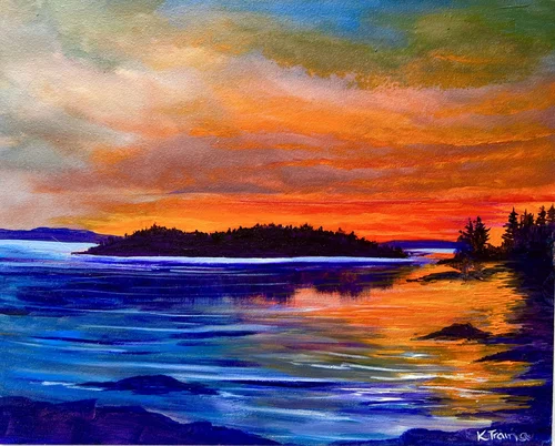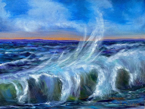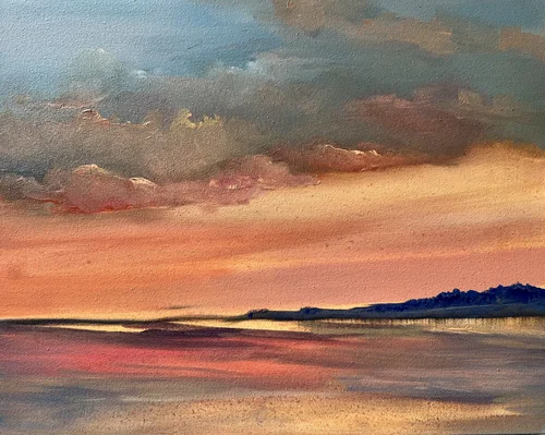 In 2024, I was craving a new adventure in expressing my creativity and have been both challenged and captivated by working with oils and acrylics. A whole new language, familiar because of years of seeing, making art and translating color, with a totally unfamiliar toolbox. Mixing colors on a palette, choosing the right brushes instead of using my fingers to mix on the paper is both exhilarating and frustrating. I love the intensity of color, and being able to both blend and layer multiple colors to create depth and shape.